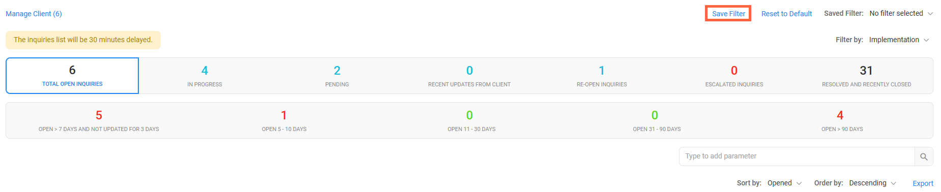 When you sort and order an inquiry list, or use the Filter by option, you can save that filter for easy access later.